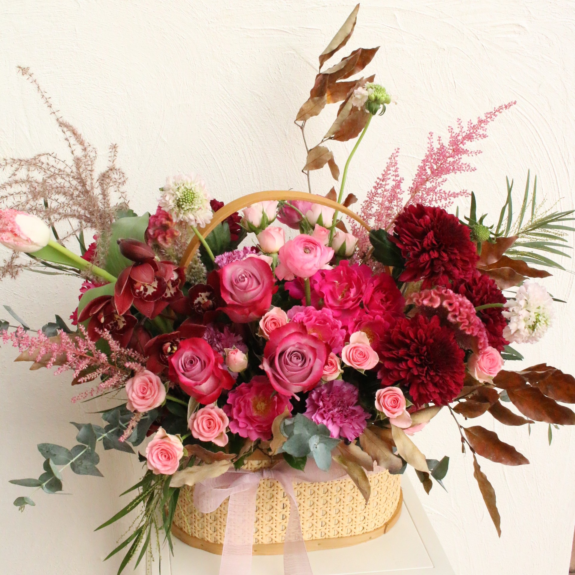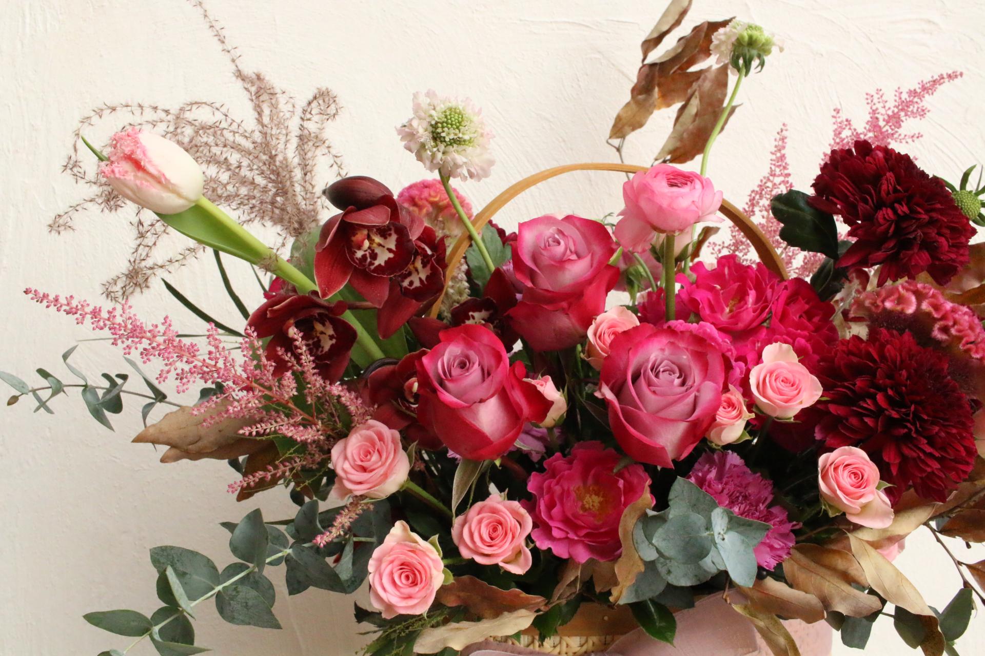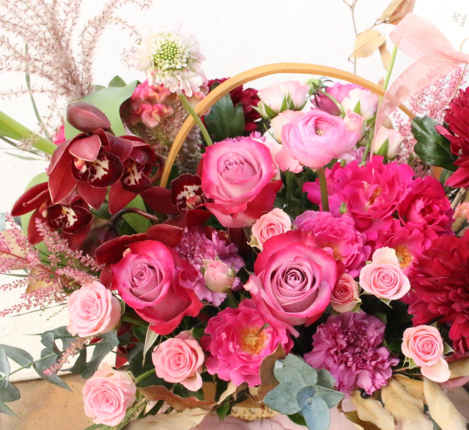 버건디,핑크 생화 꽃바구니🌷