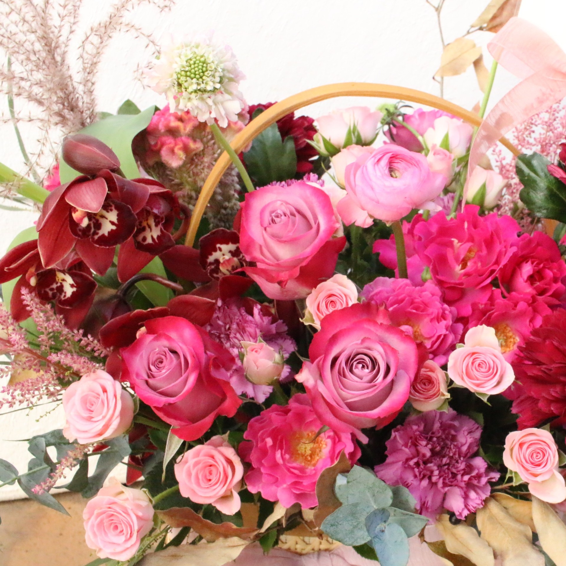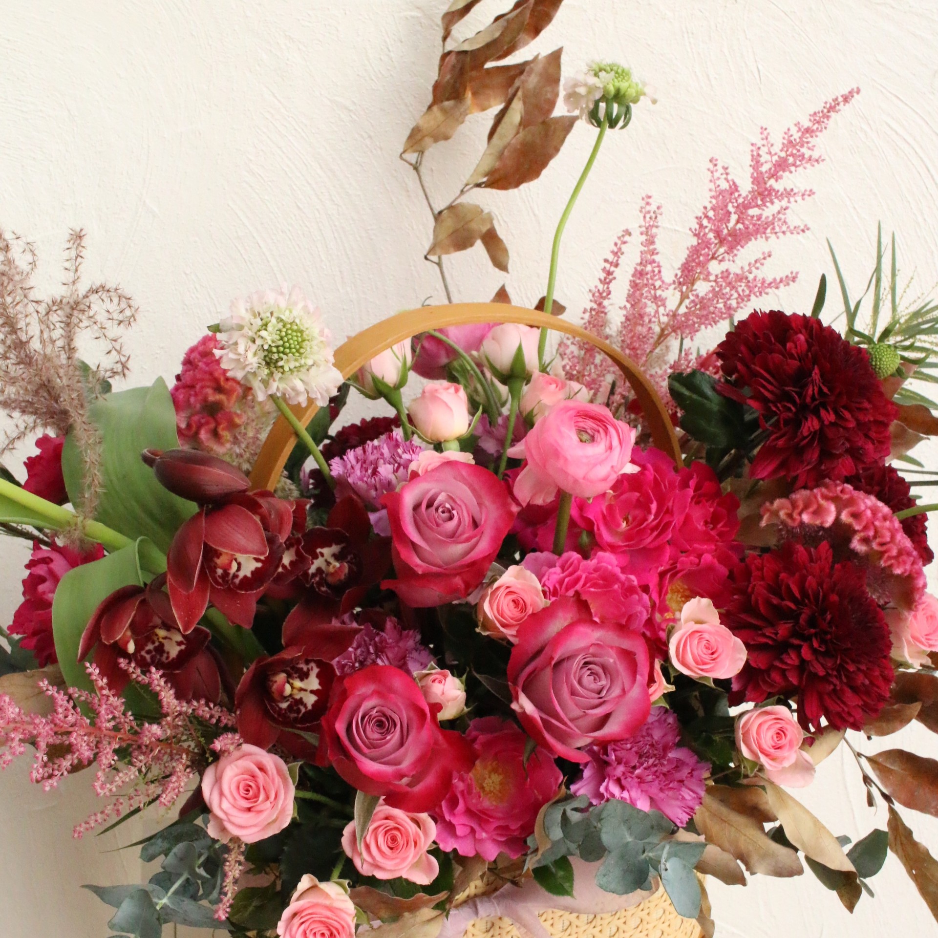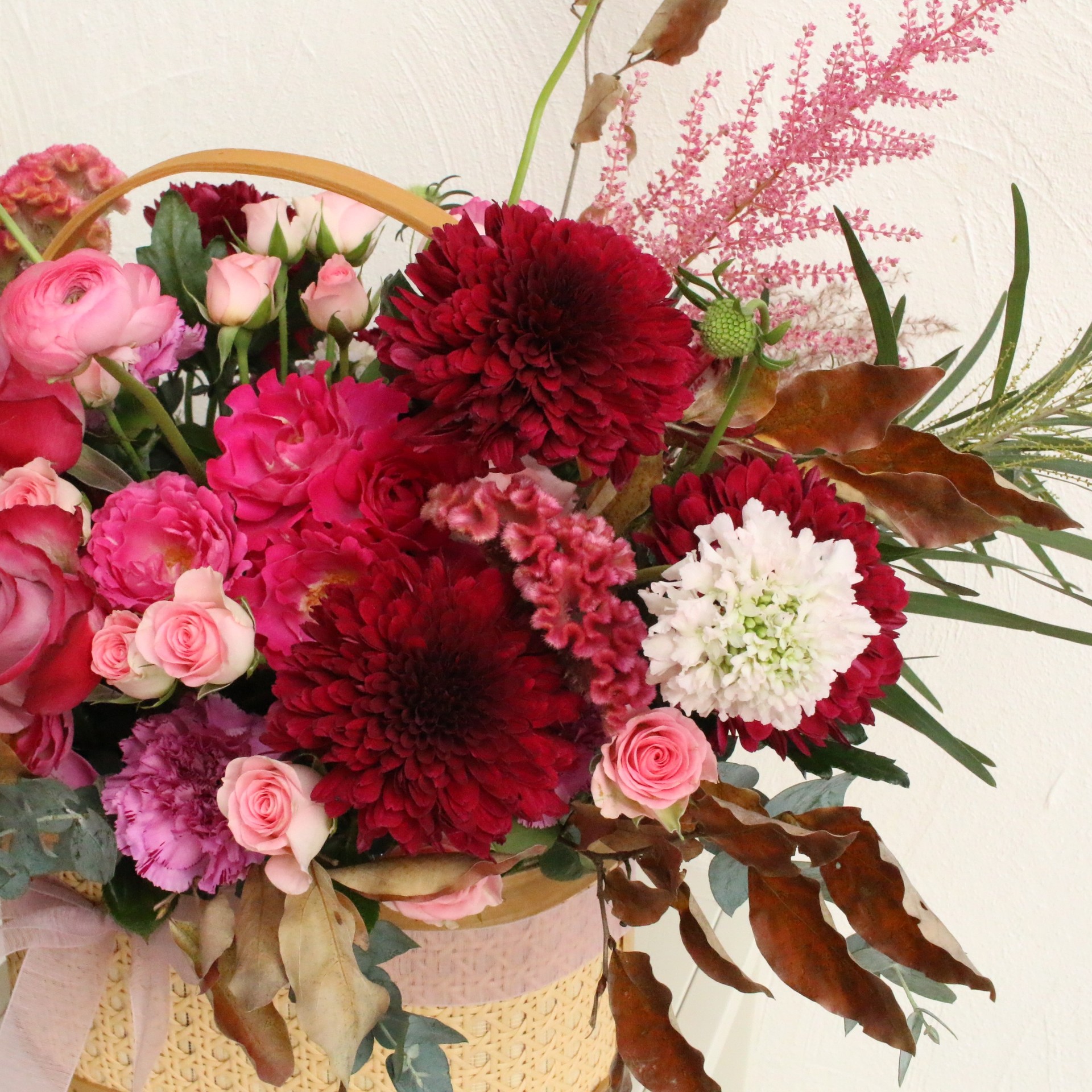 버건디,핑크 생화 꽃바구니🌷