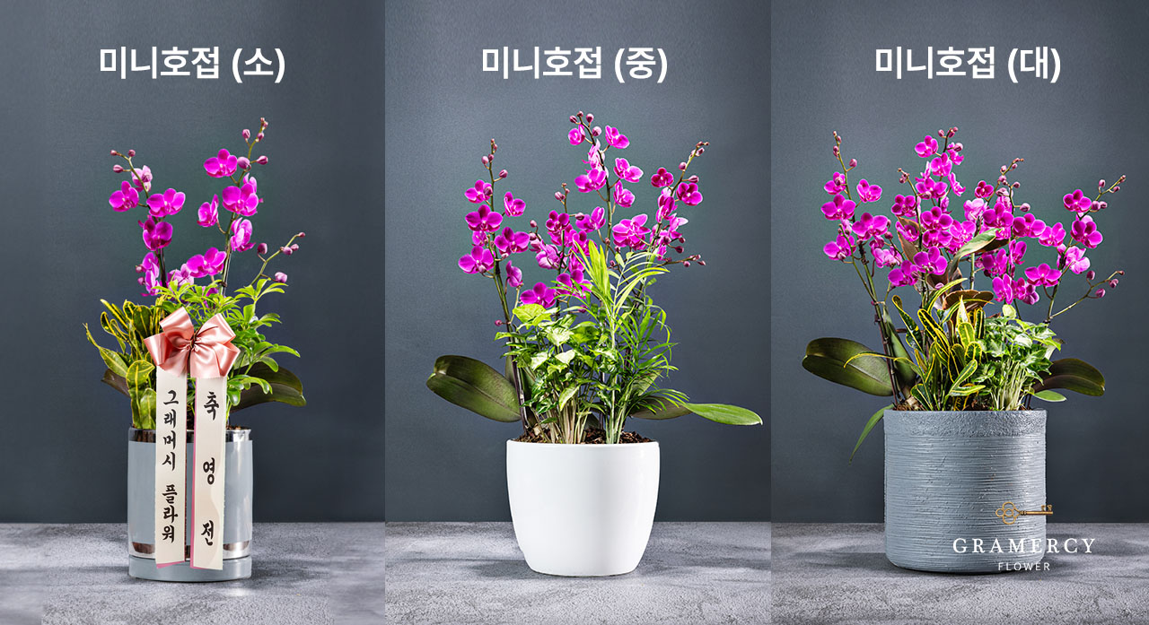 소 < 중 < 대 사이즈 순서로 화분을 구성하는 꽃 송이 수 증가 혹은